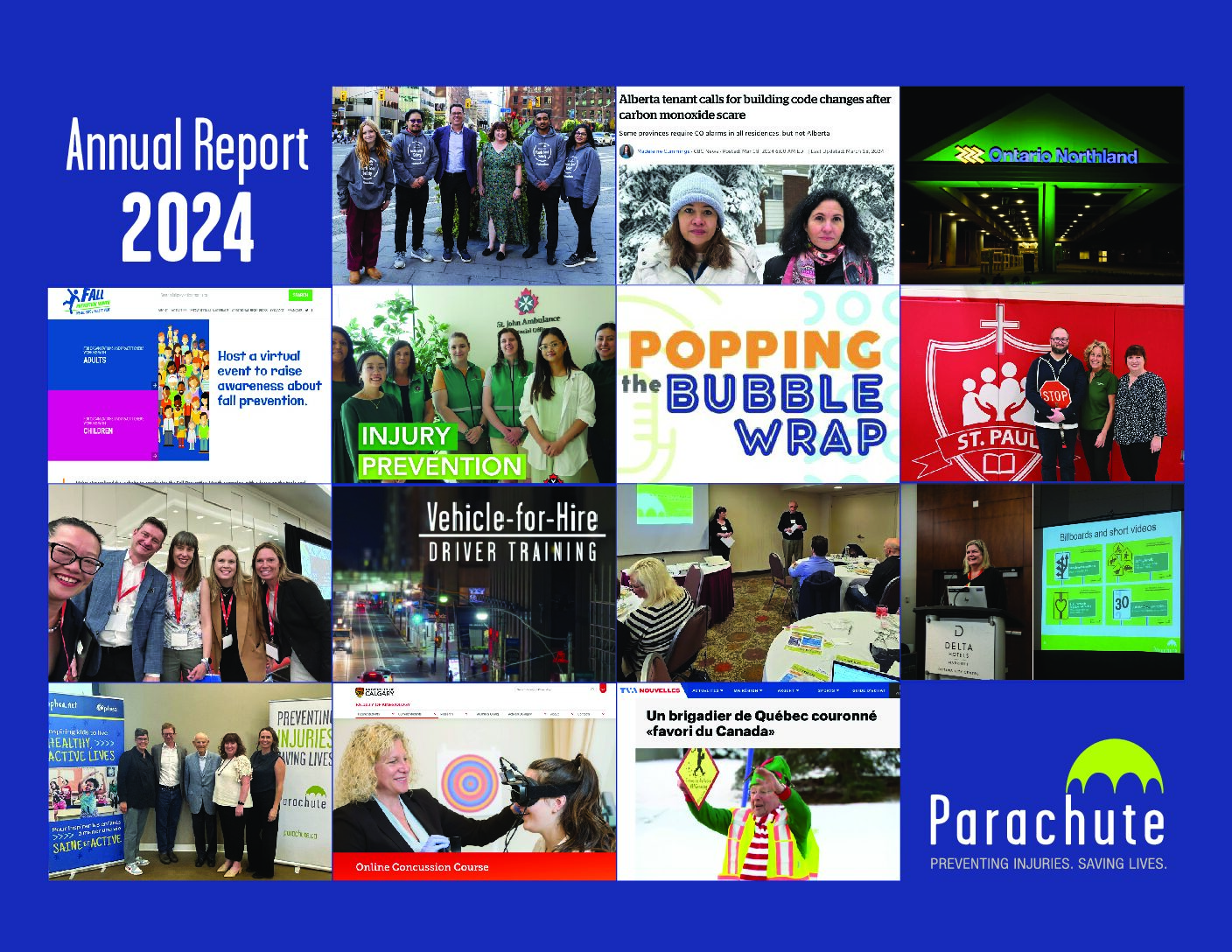 In 2024, Parachute expanded our work in youth and road safety, evolving the former National Teen Driver Safety Week into Canadian Youth Road Safety Week and launching new initiatives, including the Canadian Youth Road Safety Council, funding for Youth Ambassador road safety projects, and Snap for Change to encourage community-level advocacy for road safety. Our leadership in Vision Zero grew at municipal, provincial and national levels, with Parachute co-hosting the national Canadian Association of Road Safety Professionals conference in June in Ottawa. Parachute created and published the 2nd Edition of the Canadian Guideline on Concussion in Sport in March and later updated the many concussion resources Parachute provides to align with the updated guideline. We continued to support Canada’s poison centres, and the Canadian Surveillance System for Poison Information, with wide-ranging poison awareness education campaigns and we completed a study on parents’ knowledge of over-the-counter medications for children. We launched the second season of our podcast for parents, Popping the Bubble Wrap, one of eight Parachute injury prevention campaigns or resources that won a gold, silver or bronze award in 2024 from the International Safety Media Awards.