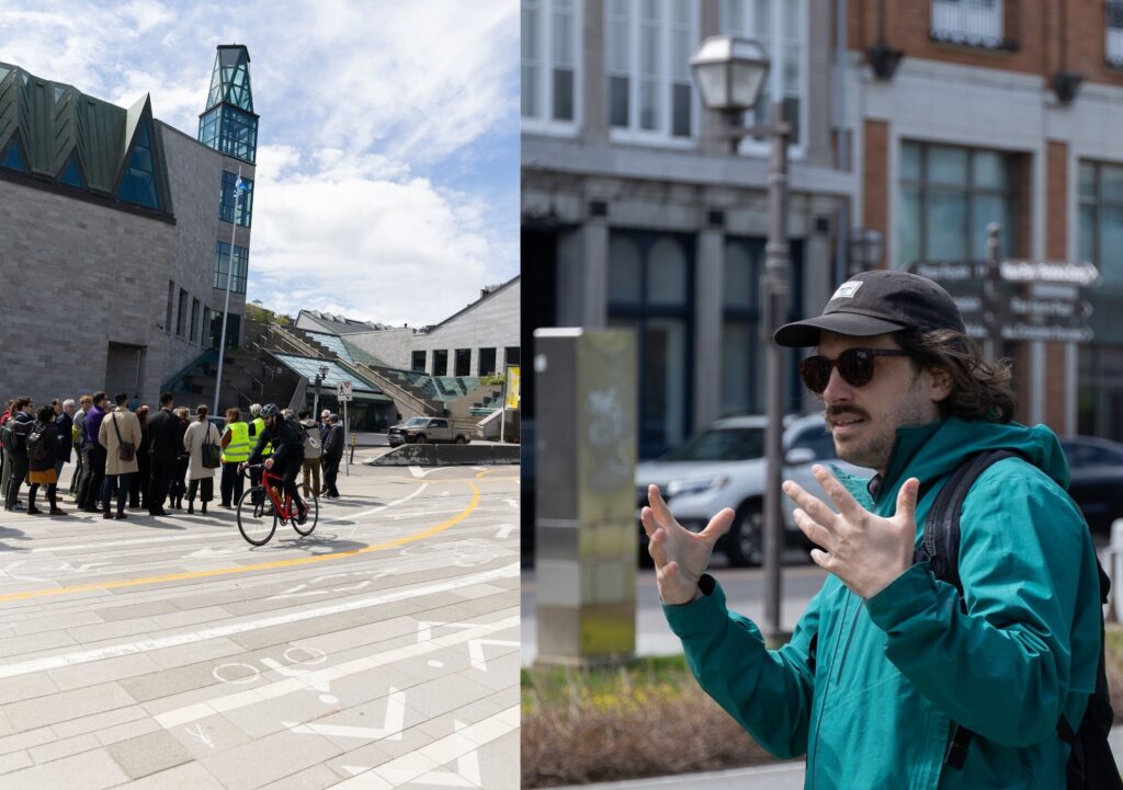 Pierre-Luc Lachance, un conseiller municipal de Québec, qui fait partie du comité exécutif de 10 membres de ce conseil, a rencontré les participants de l’atelier pédestre au coin des rues Saint-Louis et Auteuil, l’une des portes de la vieille ville fortifiée de Québec. Il a présenté le projet de Zone zéro émission qui, de juin à septembre 2025, a transformé deux zones dans le Vieux-Québec en zones piétonnes pour réduire la congestion routière et améliorer la qualité de vie dans le quartier historique. La circulation est fermée aux véhicules motorisés, sauf aux résidents, tous les jours entre 11 h et minuit. Les responsables de la Ville ont travaillé en étroite collaboration avec les entreprises locales, y compris les auberges et les hôtels, au sein des zones pour gérer les besoins de leurs clients en fonction des restrictions de la zone.